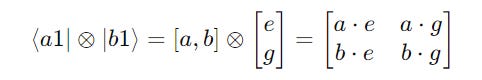 The tensor product (or Kronecker product) of two matrices combines them into a larger matrix.