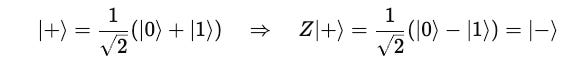 Take an example of applying the Z-gate on a qubit in an equal superposition state represented by |+>.