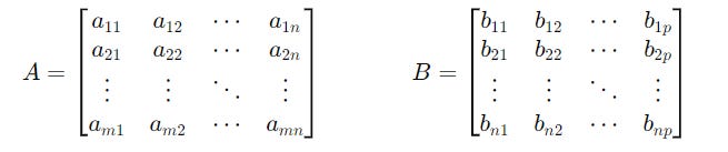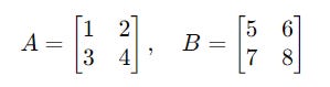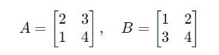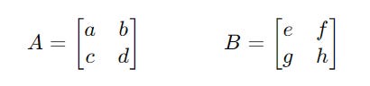 Consider two 2 x 2 matrices named A and B :