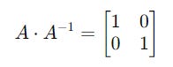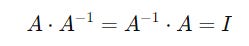 The inverse of a matrix A is a matrix that, when multiplied by the original matrix, yields the Identity matrix.