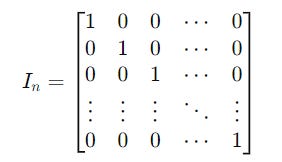 A n x n identity matrix I(n) looks like the following: