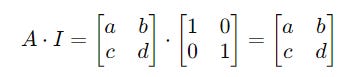 Multiplying A with I returns the same matrix A.
