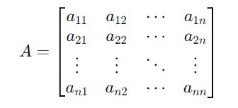 For a square matrix of dimensions 2 x 2 shown below: