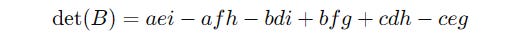 Its determinant is calculated as:
