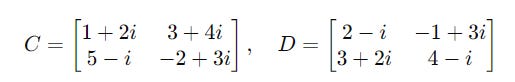 For two matrices C and D with complex numbers as their elements: