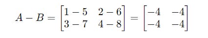 For example, you can add/subtract a 2 x 2 matrix with/from another 2 x 2 matrix but cannot add/subtract a 2 x 2 matrix with/from a 3 x 2 matrix.