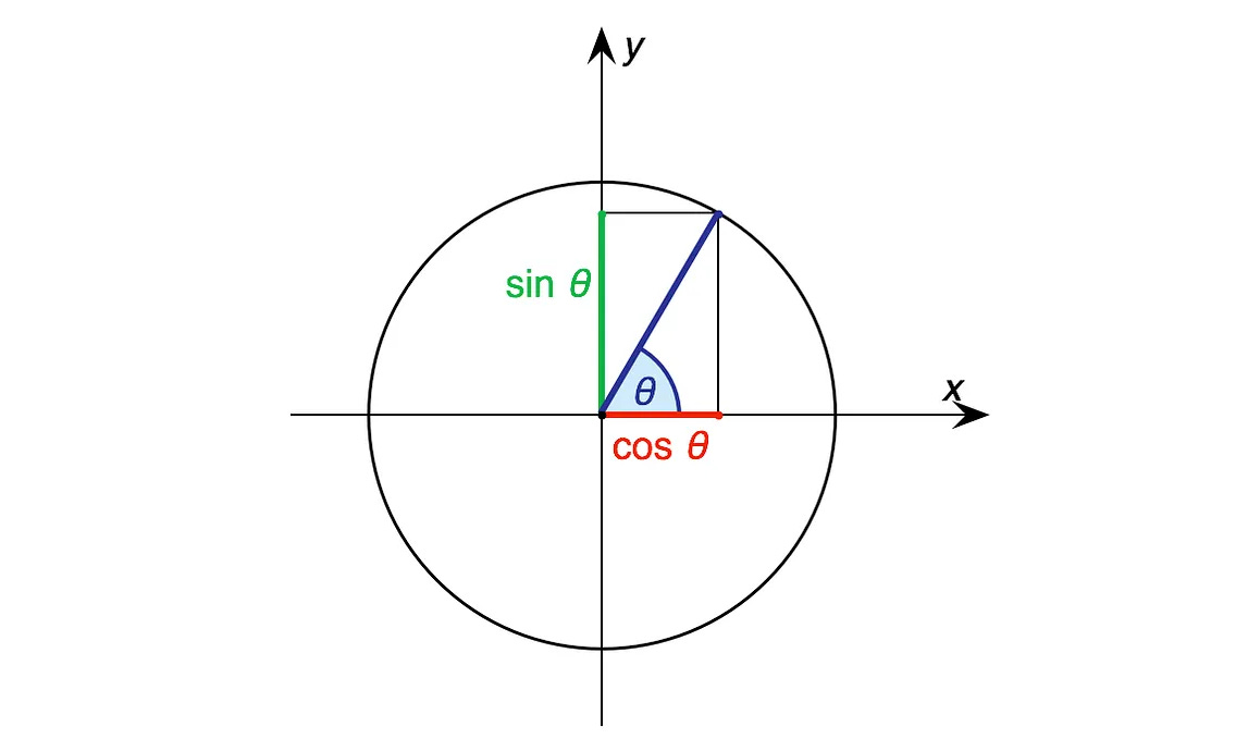 If we draw a right-angled triangle inside a circle of radius of unit length, the position of the point where the radius intersects the circumference of the circle can be represented by (x, y) where: