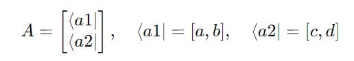 Transposing it turns these bras into kets as follows: