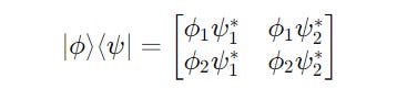 To calculate an outer product of two quantum states ∣ϕ⟩ and ∣ψ⟩ as shown below,
