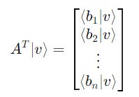 Then, the coefficients of |v> onto the basis can be calculated using the inner product of the transpose of matrix A with |v>.