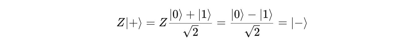 We know from previous lessons that the Pauli-Z gate causes a phase flip for a qubit in the state |1> but leaves |0⟩ unchanged.