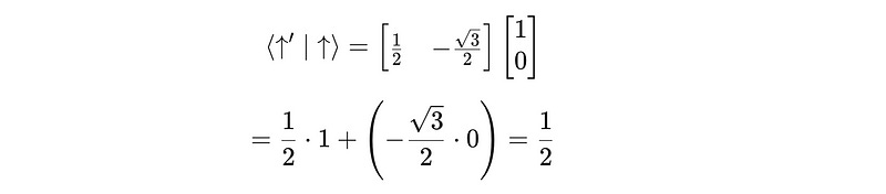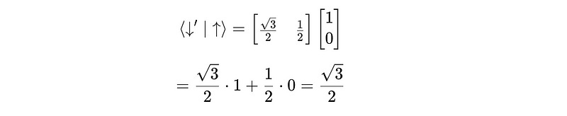 Similarly, to find b, we calculate the inner product ⟨↓′∣↑⟩:
