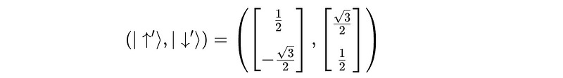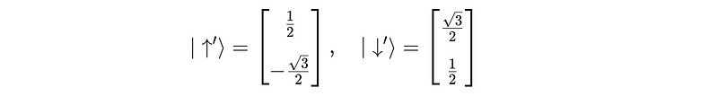 The second ket vector/ column is in the new “spin-down” state on a rotated basis.