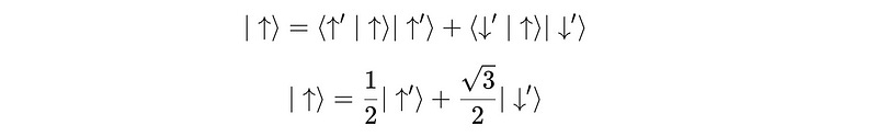 We start by expressing ∣↑⟩ as a linear combination of the new basis vectors.