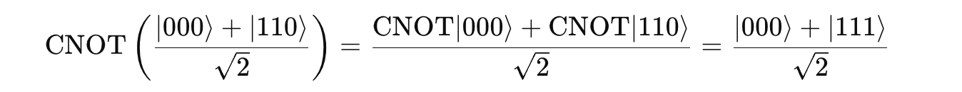 """When we measure all three qubits, we observe 000 and 111 with each occurring about 50% of the time as expected.