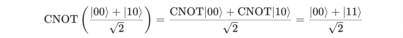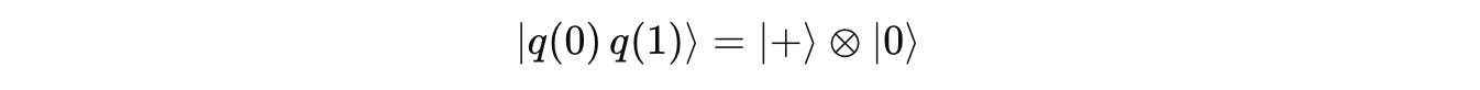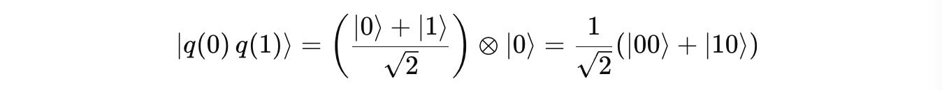 Next, we consider the joint state of q(0) and q(1) and apply the CNOT gate to it, with q(0) as the control and q(1) as the target.