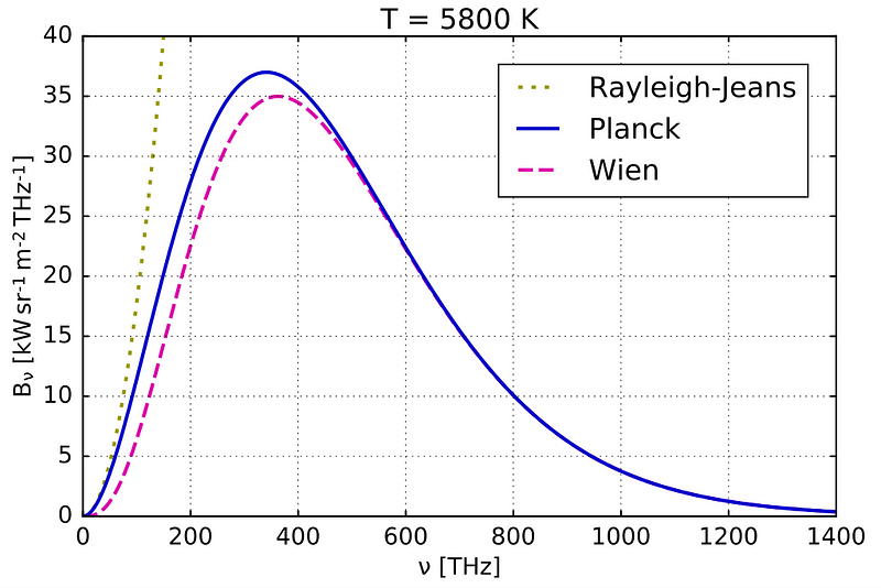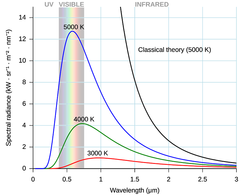 This shortcoming of the law is called “Ultraviolet Catastrophe”.