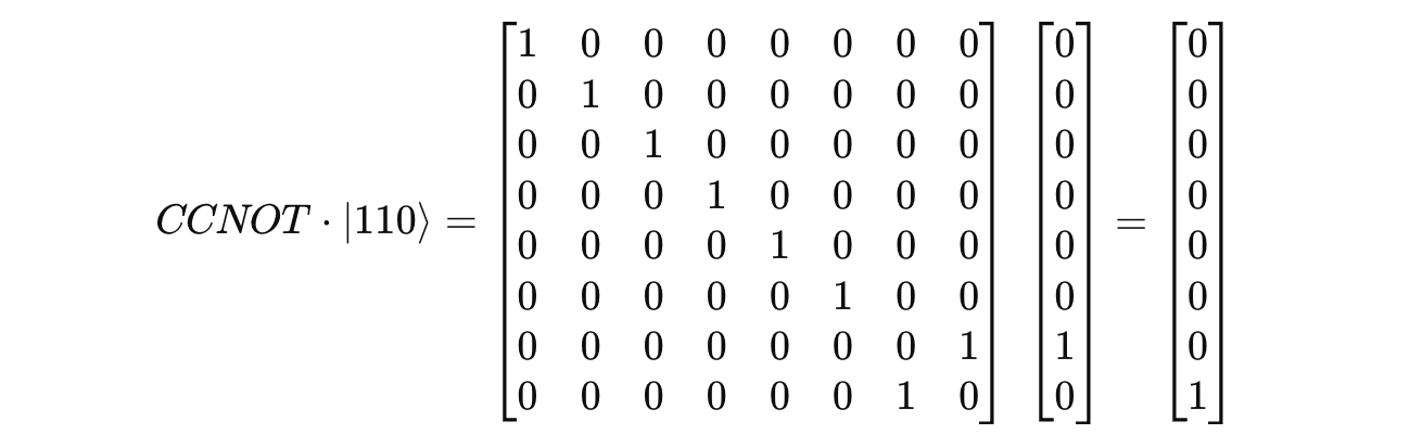 When we apply the Toffoli gate to it, the following matrix multiplication takes place: