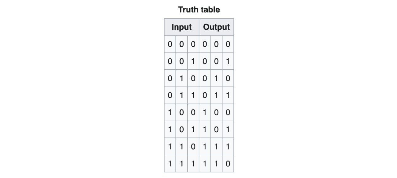 The truth table for the Toffoli gate is as follows.